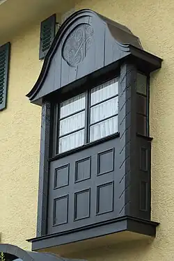 Die zweigeschossige Villa im historisierenden Stil wurde vom Architekten Bernhard Borst erbaut. Der Erker, die Form ist typisch für Bernhard Borst, über dem Eingang markiert das Treppenhaus.