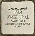 IN IBIZA-STADT LEBTE JOAN GÓMEZ RIPOLL GEBOREN 1888 ERMORDET 30.9.1942 PALMA |