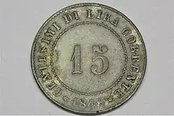 15 Centesimimünze von 1848, Wertseite