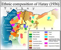 Bereits im Juli 1939 waren viele arabische und armenische Familien aus Hatay ausgewandert. Insgesamt nahm Syrien um die 50.000 Flüchtlinge auf, darunter 22.000 Armenier, 12.000 sunnitische Araber, 10.000 Alawiten und 5.000 orthodoxe Christen. Zurück blieben vor allem arabische Bauern, die ihr Land nicht aufgeben konnten oder wollten.[32]