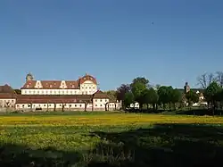 - Ökonomiehof, Dreiseitanlage, mit Mansarddach, akzentuiert durch Eck- und Mittelpavillons, von Matthias Binder, 1751–62