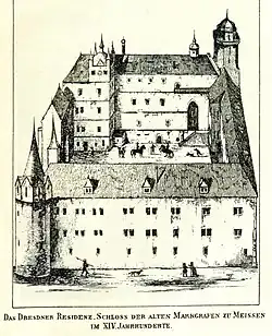 - ↑ Norbert Oelsner: Zur Typologie der Dresdner Burganlage bis zur Mitte des 15. Jahrhunderts. In: Landesamt für Denkmalpflege Sachsen (Hrsg.): Das Residenzschloss zu Dresden. Band 1: Von der mittelalterlichen Burg zur Schlossanlage der Spätgotik und Frührenaissance. Petersberg 2013, S. 175–188.
