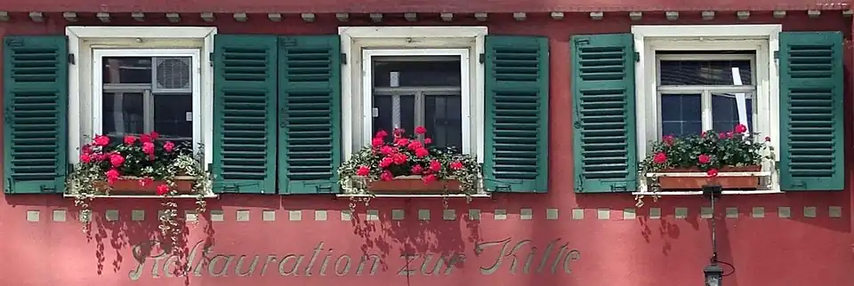- „Eingeweihte wissen, dass man in der vergangenheitsgetränkten Kiste in der holzgetäfelten Stube mit von zahlreichen Hosenböden und Ärmeln blankpolierten Bänken und Tischen urgemütlich sitzen und in diesem Hort schwäbischer Gemütlichkeit vespern kann wie früher. Die Fleischküchle mit Kartoffelsalat schmecken wie daheim, auch Maultaschen, Rostbraten oder Gaisburger Marsch sind die Renner. Kenner bestellen Einsundeins, eine Maultasche und ein Fleischküchle mit herrlichen Bratkartoffeln. Hier ist gut sein, besonders mit einem Viertele Wein, oder zwei oder drei.“
