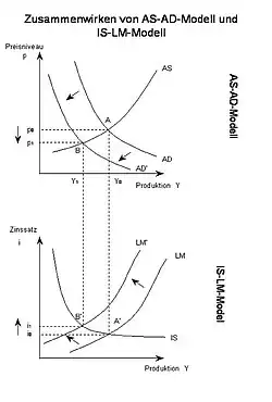 Geldpolitik kann kurzfristig und langfristig unterschiedliche Auswirkungen haben. Kurzfristig wirkt sich eine Veränderung der Geldmenge auf die AD-Kurve, bei einer relativ flachen AS-Kurve, zum größten Teil auf die Produktion und nur zu einem geringen Teil auf das Preisniveau aus. Langfristig dagegen, wenn die AS-Kurve einen beinahe vertikalen Verlauf annimmt, führen Geldmengenverschiebungen vorwiegend zu Änderungen des Preisniveaus und kaum noch zu Änderungen der Produktionsleistung. Im Extremfall, wenn Änderungen der Geldmenge nur nominelle Variablen betreffen, ohne Auswirkung auf reale Variablen zu haben, kann man sagen, dass jede Geldmengenveränderung immer die gleiche Auswirkung (kurz- und langfristig) erzielt. Dabei steht die angestrebte Preisstabilität unmittelbar im Zusammenhang mit der Inflationsrate. Weiterführend steht die Inflation direkt in Beziehung mit der Arbeitslosigkeit, dabei stellt die Phillips-Kurve ein wichtiges Analyseinstrument dar. Die Kurve veranschaulicht die Beziehung zwischen Inflation und Arbeitslosigkeit. Auf kurze Sicht bedeutet das, dass die Senkung des einen zu einer Erhöhung des anderen führt.