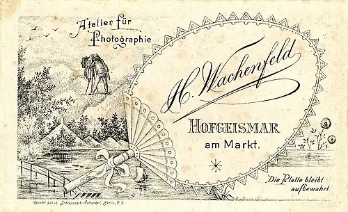 Revers CdV mit Adressen der Filialen; Atelier Wilhelm Höffert; Lithograf Haake & Albers, Frankfurt a. M.