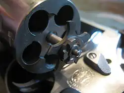 Unabhängig davon definiert sich ein Revolver darüber, dass der Patronenlagerblock über mehrere Kammern verfügt und drehbar ist. Mehrere Schüsse können nur abgegeben werden, wenn sich das Patronenlager schrittweise dreht, um jeweils eine geladene Kammer vor die Auslösevorrichtung (Schlagstück) zu bringen.