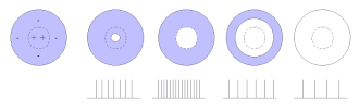 - höhere Empfindlichkeit: Da ein eingehendes Lichtsignal durch Konvergenz verstärkt werden kann (ein Neuron wird von mehreren Rezeptoren angeregt), ist die Empfindlichkeit bei höherer Konvergenz größer (siehe räumliche Summation). Bei den größeren rezeptiven Feldern in der Peripherie nimmt daher auch die Fähigkeit zu, Bewegungen wahrzunehmen.