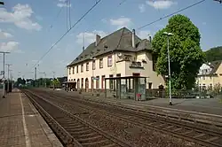 Der Bahnhof Rheinbrohl liegt an der rechten Rheinstrecke. 1958 wurde er mit einem Drucktastenstellwerk ausgestattet.[15]