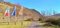 - Etwas weiter oberhalb des Ehrenmals befindet sich der Aussichtspunkt der Rheinbrohler Ley. Ein den Rhein überragender Felsenberg, der dort eine Aussicht in alle Himmelsrichtungen bietet.[14]