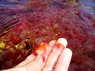 - ↑ a b c d e Olivier Grunewald: Caño cristales: el río que escapó del Paraíso. ( des vom 8. Dezember 2022 im Internet Archive) Info: Der Archivlink wurde automatisch eingesetzt und noch nicht geprüft. Bitte prüfe Original- und Archivlink gemäß Anleitung und entferne dann diesen Hinweis. In: National Geographic. 16. März 2018 (spanisch).