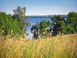 In den See ragen mehrere markante Halbinseln, darunter von Osten die Halbinsel Bindara. Außerdem gibt es im belarussischen Südteil vier Inseln und in der durch die Halbinsel Bindara abgetrennten großen nördlichen Bucht eine Insel auf lettischer Seite.