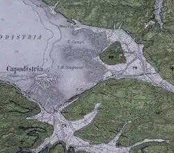 - ↑ a b Guido Stache: Nachtrag zur „Geologischen Spezialkarte der im Reichsrate vertretenen Königreiche und Länder der Österreichisch-ungarischen Monarchie“. Blatt Triest, 1:75.000. (aufgenommen 1886–1891) Geologische Staatsanstalt, Wien 1920.