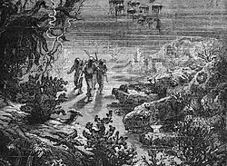 - ↑ Es gibt zahlreiche, deutschsprachige Ausgaben u. a.: Jules Verne: Zwanzigtausend Meilen unter Meer (erster Teil). Diogenes Taschenbuch, Zürich 1976, ISBN 3-257-20245-8, S. 212 f.