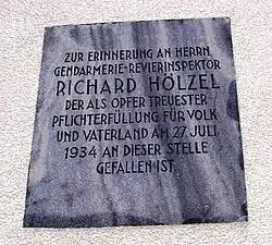 Am 28. Oktober 1934 wurde in Gedenken an den in Kollerschlag ermordeten Revierinspektor Hölzel unter Anwesenheit des Landeshauptmanns Heinrich Gleißner und einer eindrucksvollen Öffentlichkeit eine Gedenktafel enthüllt. Die Inschrift lautete: „Zur Erinnerung an Herrn Gendarmerie-Inspektor Richard Hölzel, der als Opfer treuester Pflichterfüllung für Volk und Vaterland am 27. Juli 1934 an dieser Stelle gefallen ist.“ Diese Gedenktafel wurde in der NS-Zeit beseitigt und stattdessen wurde am 2. Juli 1938 eine Gedenktafel für die bei dem Putschversuch getöteten SA-Männer Fritz Obermüller, Franz Brunnbauer und Engelbert Regner am Gasthaus Brunnbauer in Kollerschlag angebracht. 1945 wurde diese Gedenktafel entfernt. Am 12. Juli des Jahres 1954, dem Gendarmeriegedenktag, wurde die Gedenktafel für Richard Hölzel, die sich heute am Gebäude der Gemeinde Kollerschlag befindet, wieder errichtet.