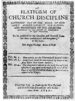 - A Platform of Church Discipline Gathered out of the Word of God. Cambridge, Mass. Bay 1649.