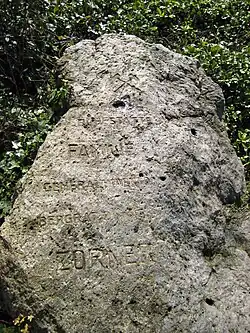 Der Grabstein der Familie Zörner war 1984 vom Bensberger Friedhof abgeräumt und auf Veranlassung des Bergischen Museums in Bensberg auf dem städtisten Betriebshof, dem Birkerhof nachlässig eingelagert worden. Er lag dort unter einem Berg alter Steine und Balken. Darüber hatte der Kölner Stadt-Anzeiger am 22. Januar 1988 berichtet.[6] Das führte zu Protesten in der Bevölkerung. Am 3. Januar 1989 meldete der Kölner Stadt-Anzeiger, dass man den Stein wieder auf den Friedhof zurückgebracht habe. Dort liegt er auf dem von der Stadt Bergisch Gladbach und dem Bergischen Geschichtsverein angelegten, sogenannten Campus Memoriae, umgeben von weiteren erhaltenswerten Grabsteinen.