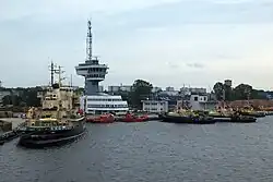 Direkt neben der unteren Bake ist inzwischen das repräsentative Gebäude der Freihafenverwaltung[4] mit einem Tower, von dem aus der Schiffsverkehr gelenkt wird.