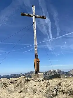 Auf dem breiten, unbewaldeten Gipfelplateau befindet sich ein großes Kreuz, bei dem verschiedene Wander- und Aufstiegswege zusammentreffen. Von dort hat man an klaren Tagen einen Rundblick vom Bodensee über die Berge des Bregenzer Waldes und die Gletscher der Schesaplana bis zu den Lechtalern Alpen, auf die Nagelfluhketten, auf die hellen Kreidewände des Gottesackers, auf den Allgäuer Hauptkamm und in das Illertal bis ins Voralpenland.