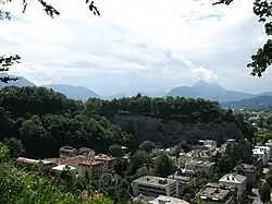 - Riedenburgkaserne: Sie bestand seit 1736, früher mit weitläufigem Exerzierfeld am Nordhang des Rainberges.[2][3] Seit 1966 war sie Sitz des Militärkommandos Salzburg.[4][5] Das Kasernenareal wurde im Rahmen eines großen neuen Wohnbauprojekts verbaut. (Quartier Riedenburg)[6]