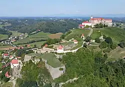 Vor oder um 1100 dürfte auf der Nordkuppe die obere Feste errichtet worden sein (später: Kronegg), dazu nordöstlich am Bergfuß die ursprüngliche Hauptpfarre Maria Magdalena, deren Pfarrhof bis 1979 für die spätere fast einen Kilometer entfernte Pfarrkirche St. Martin genutzt wurde, und westlich des Burgstockes die später Altenmarkt genannte Burguntersiedlung, die vielleicht in Ansätzen schon vorhanden war.