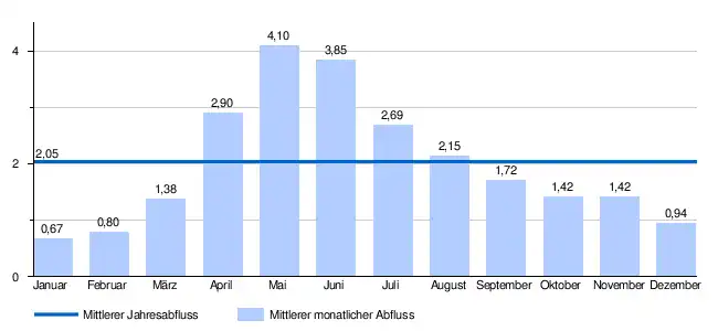 2,05 m³/s 74,7 l/(s km²) | ||||