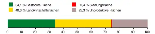 Es besteht zu 34,1 % aus bestockter Fläche, zu 40,3 % aus Landwirtschaftsfläche, zu 0,4 % aus Siedlungsfläche und zu 25,3 % aus unproduktiven Flächen.