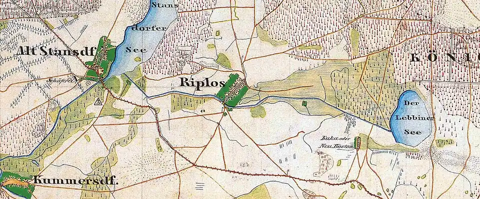 - ↑ Seite über Rieplos auf der Homepage der Stadt Storkow (Mark) ( des vom 10. Dezember 2013 im Internet Archive) Info: Der Archivlink wurde automatisch eingesetzt und noch nicht geprüft. Bitte prüfe Original- und Archivlink gemäß Anleitung und entferne dann diesen Hinweis.