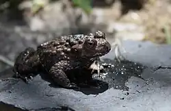 Männchen von Bombina maxima mit grünem Fleck auf dem Rücken