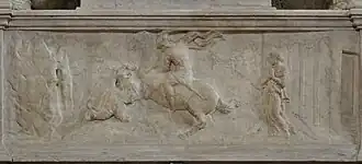 Der Rilievo Schiacciato[Anm 1] ist eine Technik, bei der ein Bildhauer eine flache Reliefskulptur schafft.[1] Der Rilievo Schiacciato wird vor allem mit seinem „Renaissance-Erfinder“ Donatello (1386–1466) in Verbindung gebracht.