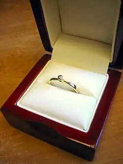 Ein Verlobungsring ist ein Ring, der das Versprechen symbolisiert, mit einem anderen die Ehe eingehen zu wollen.