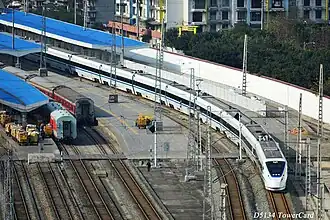 - ↑ Ji Xiang: Direct high-speed railway linking Chengdu, Hong Kong launched. In: China News Service. 2. Juli 2023, abgerufen am 8. April 2024 (englisch).