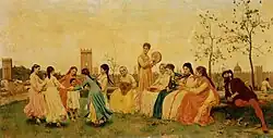 Girotondo ist die italienische Bezeichnung für einen Ringelreihen. Sie beruht auf der ersten Zeile des dazu gesungenen Kinderreims,[26] der in einer Version so lautet:[27]