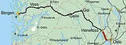 Durch die Bahnstrecke würde sich die Bahnstrecke zwischen Oslo und Bergen um 60 Kilometer und die Reisezeit um 50 Minuten verkürzen.[2] Ursprünglich standen zwei Varianten zur Diskussion.[3]