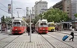 ![]() Zug der Linie 1 vor dem Parlament am äußeren Ring, kurz vor Erreichen der Haltestelle Dr.-Karl-Renner-Ring | |||||||||||||||||||||||||||||||||||||||||||||||||||||||||||||||||||||||||||||||||||||||||||||||||||||||||||||||||||||||||