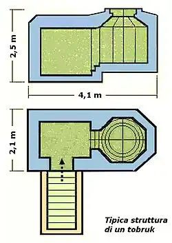 In der nordafrikanischen Kolonie Italiens, Libyen, lag mit dem Tiefseehafen von Tobruk der einzige mit größeren Schiffen erreichbare Versorgungspunkt an dieser Küste in jener Zeit. Nur ca. 200 km entfernt von der libysch-ägyptischen Grenze gelegen, war damit diese Hafenstadt, in der nur 2.000 Menschen lebten, von besonderer strategischer Bedeutung. Die italienischen Streitkräfte waren sich dessen sehr bewusst und hatten einen 50 km langen Verteidigungsring in etwa 15 km Entfernung vom Stadtzentrum angelegt, der zahlreiche nach oben offene Kleinbunker enthielt. Nachdem die Commonwealth-Streitkräfte nach dem italienischen Angriff auf Ägypten in einer Gegenoffensive die Stadt und den Festungsring 1941 einnahmen, war das Deutsche Afrika-Korps und die italienische Armee für 230 Tage nicht in der Lage, Tobruk und seinen Festungsring einzunehmen. Die Commonwealth-Truppen nannten den dort vorgefundenen italienischen Bunkertypen, Tobruk-Bunker.