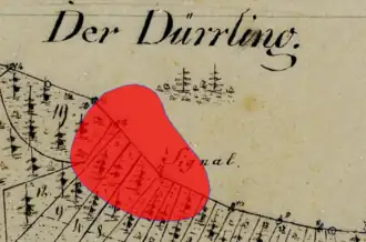 Lageplan des Ringwalls Dürrling auf dem Urkataster von Bayern | ||