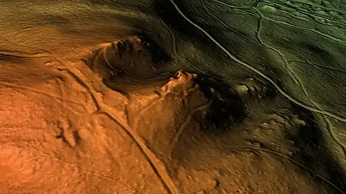 Überreste des nach Westen ausgerichteten Erdwalls | ||