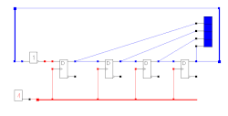 Beim Johnson-Zähler (auch Möbius-Zähler genannt) wird der Wert vom Ausgang invertiert auf den Eingang übertragen. Daraus ergibt sich ein anderes Verhalten als beim nichtinvertierten Ringzähler.