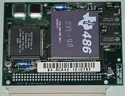 - ↑ Bild vom Mainboard und Beschreibung der Bausteine (archiviert)