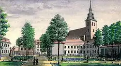 Das vor 956 gegründete Benediktinerkloster St. Michaelis lag ursprünglich außerhalb der Stadtmauern am Fuße des Kalkberges. Nach der Schleifung der landesherrlichen Burg im Lüneburger Erbfolgekrieg wurde es 1371 in die Stadt verlegt. Im Zuge der Reformation gab es Bestrebungen durch die Celler Herzöge, den Klosterkonvent aufzuheben und die Klostergüter einzuziehen. Durch den Widerstand des Klosters und der Stadt Lüneburg misslang dies jedoch und der Konvent blieb, nun als evangelisches Männerkloster, bestehen. 1655 erfolgte der nächste Versuch der Herzöge, das Kloster aufzuheben. Trotz massiven Widerstandes durch den Konvent und durch die Lüneburger Ritterschaft gelang es Herzog Christian Ludwig schließlich, sich durchzusetzen und eine Einigung mit den Mönchen und der Ritterschaft zu erzielen. Die ehemaligen Bewohner des Klosters wurden abgefunden und das Vermögen des Klosters sollte für den Aufbau und Betrieb einer Schule für den lüneburgischen Adel verwendet werden.