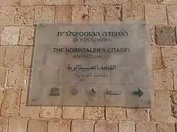 - ↑ a b c d e f g h i j k l m n o p „Hospitaliter-Festung“ ( vom 26. August 2019 im Internet Archive), auf: Die Geheimnisse der überirdischen und der unterirdischen Stadt Akko, abgerufen am 26. Februar 2019.