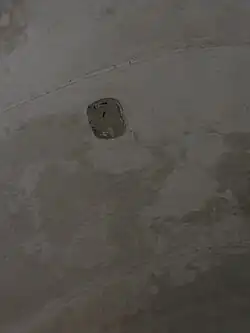 Dem Ostflügel östlich vorgelagert ist der ehemalige Kerker, ein Gemäuer aus fünf Meter hohen Kreuzgewölben ohne jedes Fenster aber mit teils herausgerissenen Eisenringen im Mauerwerk, wo Häftlinge angekettet waren.[46] Der Boden des Kerkers wurde aus dem Grundgestein herausgeschlagen,[7] wodurch er insgesamt 2,5 Meter tiefer liegt als derjenige benachbarter Räume.[9] Zutritt war ursprünglich nur von Süden per Treppe zur höher, hier in Ost-West-Richtung verlaufenden Geschäftsstraße.[9] Im Südosteck südlich der Pfeilerhalle und östlich der Küche entdeckte man Anfang der 1960er Jahre den heute so genannten Schönen Saal,[52] wegen der fein behauenen und gesetzten Werksteine so benannt.[7] Der Saal war von der Straße aus zugänglich und wohl als Empfangshalle erste Anlaufstelle und Zutritt für Besucher von auswärts.[7]