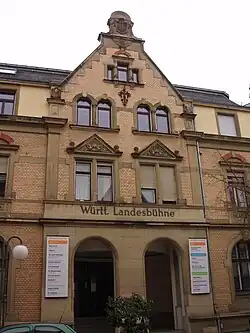 Das Gebäude wurde in den Jahren 1898/99 nach Plänen von Hermann Falch als Bank- und Wohnhaus errichtet und zunächst von der Esslinger Actien-Bank genutzt, die 1889 gegründet und 1910 von Stahl & Federer übernommen wurde.[1] Die Geschäftsräume befanden sich im Erdgeschoss, das mit großen Rundbogenfenstern ausgestattet ist. Eine Wohnung für den Bankdirektor befand sich im ersten Stock. Mittlerweile dient das Haus als Verwaltungssitz der Württembergischen Landesbühne.