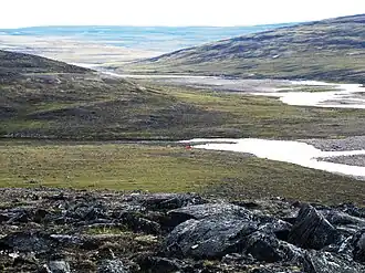 ![]() Rivière Vachon nahe der Einmündung des Abflusses des Lac Kapijuq | ||