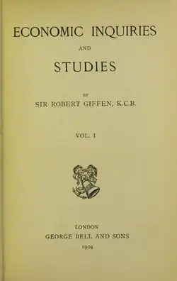 - ↑ Sir Robert Giffen, K.C.B., F.R.S. – Nachruf in Nature, volume 83, pages254–255 (1910)