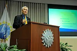 - ↑ For achievements in the field of magnetism, and in particular for the identification of model magnetic systems and the experimental elucidation of their behavior using neutron scattering techniques. IUPAP