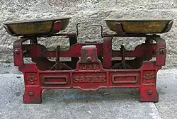 Tafelwaage nach Roberval mit Laufgewicht und Zeiger -