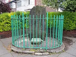 - ↑ “Hey” ist ein angelsächsisches Wort für eine Einhegung, möglicherweise für Tiere. Es ist möglich, dass ein Bauer den Stein auf das Feld brachte, um den Tieren als Kratzstein zu dienen.