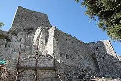 Der zweistöckige Wohnsitz der Burgherren stand auf dem oberen Plateau des Viertels. Er war in der ersten Bauphase der Burg (10. Jahrhundert) entstanden, indem man die höchste Gesteinslage der Kuppe als Steinbruch nutzte. Die Residenz schmückte ein Marmorboden, der in unseren Tagen teilweise restauriert wurde. Der rechteckige Bergfried (spätes 11. / frühes 12. Jahrhundert) auf dem Gipfel der Hügelkuppe hatte eine Grundfläche von 4 mal 5 Metern.