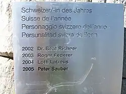 - ↑ Tagesanzeiger am 4. Januar 2004: Roger Federer ist «Schweizer des Jahres» ( vom 25. Juli 2014 im Internet Archive)